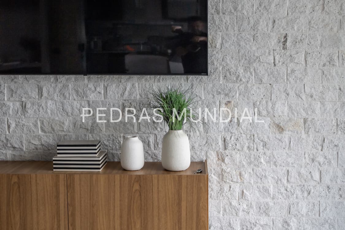 A Pedra Alaska está disponível em diferentes cortes, desde mais orgânicos até em formatos de tijolinhos, permitindo uma variedade de opções de design e paginação. Indicada para revestir paredes em ambientes residenciais e comerciais, oferece uma estética sofisticada e versátil, complementando diversos estilos de decoração. Sua tonalidade branca ou creme traz luminosidade aos espaços, criando uma atmosfera convidativa e acolhedora.